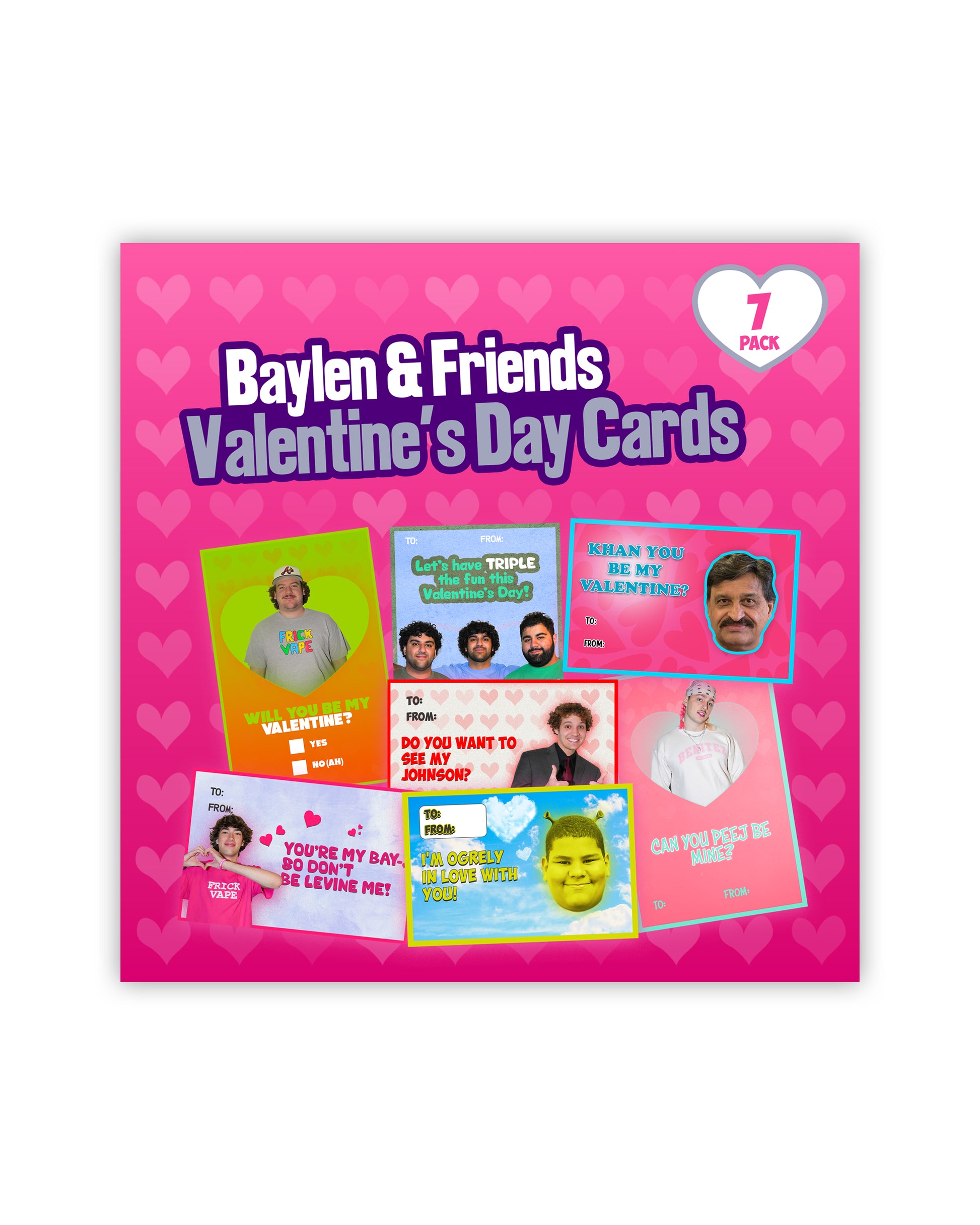 • 7 original Valentines Day cards featuring Baylen, Lil Peej, Sebas, Noah, Kyle, Triple Threat, and Mr. Kahn